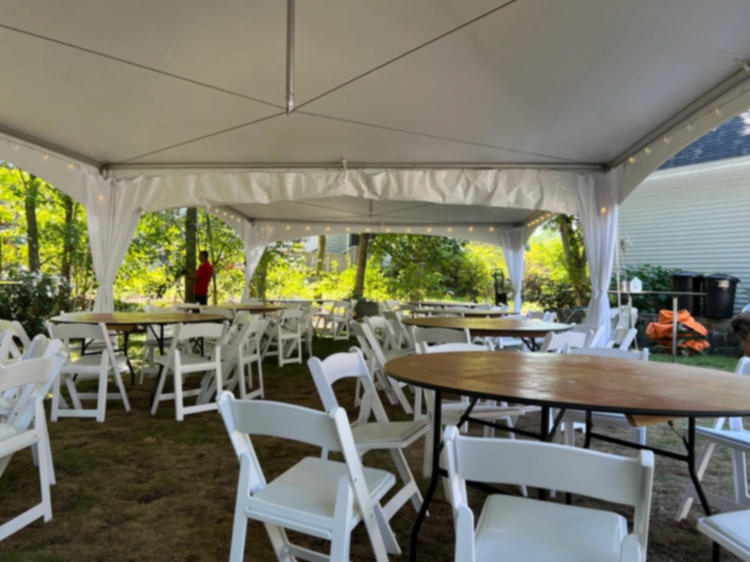— Hillary R.“We had an incredible experience with Evo Tents! Jared and his team went above and beyond—setting up our tent during a complete downpour with intense winds. It was amazing to see their professionalism and dedication in such tough conditions. […] Highly recommend them to anyone looking for a reliable, hardworking, and friendly team to bring your event vision to life! We rented round tables, farm tables, chairs, lighting, linen and more from them- seriously couldn't have asked for a better all around vendor!”